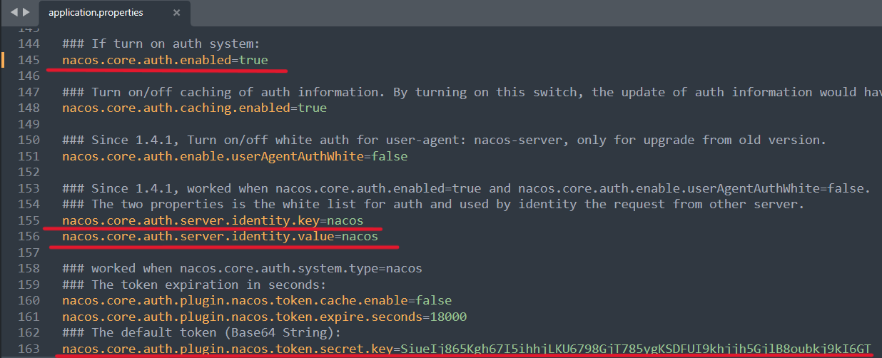 首先需要先在nacos\nacos\conf\application.properties下开启鉴权