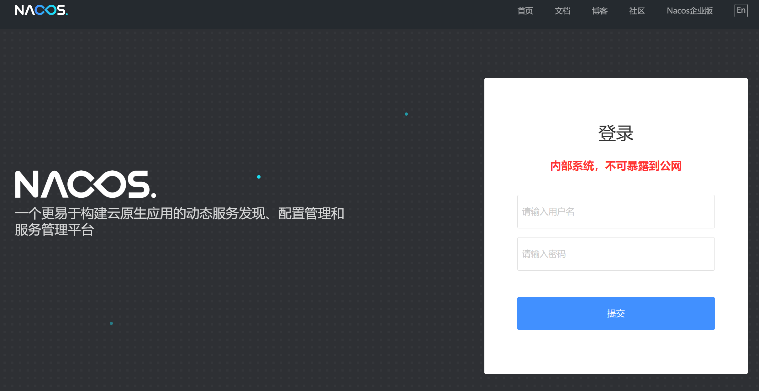 起初默认状态下,Nacos安装包nacos\nacos\conf\application.properties下鉴权是关闭的,即同一个局域网内都可以通过 http://10.12.xxx.xx:8848/nacos/index.html来访问你的Nacos,尤其是连接公司或学校的WIFI时,只要连接此WIFI的用户都能通过此链接访问你的Nacos,极其不安全。